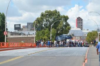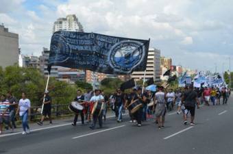 Unos 600 trabajadores del cuero, que forman parte del Sindicato de Obreros Curtidores de la República Argentina, junto a integrantes de las agrupaciones Frente Villero y Unidos y Organizados, cruzaron el viejo puente Bosch que conecta Avellaneda con Barracas, en su marcha hacia las avenidas 9 de Julio y Belgrano, donde participaron del masivo acto contra las políticas de ajuste, destrucción de la industria nacional, robo a jubilados, tarifazos y precarización laboral, que aplica el gobierno de la Alianza Cambiemos.
