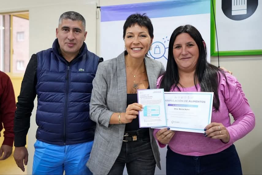 «Esto se da en función de una gestión que va pensando de qué manera podemos seguir ayudando. No solo a que seamos responsables con el manejo de la manipulación de alimentos, sino también como damos un pasito más en la capacitación, en la formación, articulando con los sindicatos para poder generar una posibilidad más de progreso. Y ustedes saben lo que significa ir a cada clase, cumplir con la responsabilidad de formarse en la tarea de cuidar, porque manipular responsablemente los alimentos es también cuidar y tiene que ver con un acto de compromiso con la ciudadanía», señaló Mayra, acompañada por el secretario de la Agencia de Fiscalización y Desarrollo Económico, Julián Bellido.