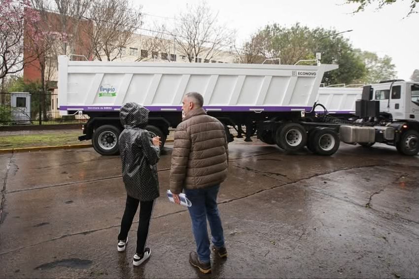 Los nuevos vehículos son cinco camiones con almeja (hidrogrúa con adaptación hidráulica en conjunto con pulpo para residuos tipo chatarreros) y dos camiones con bateas largas, adquiridos con fondos netamente municipales, además de un camión de carga lateral, comprado por leasing del Banco Provincia. A partir de estas incorporaciones, la mencionada área pasó de 69 a 77 vehículos de flota pesada. En relación al camión de carga lateral, es la tercera incorporación del año de estas características junto a 300 contenedores.