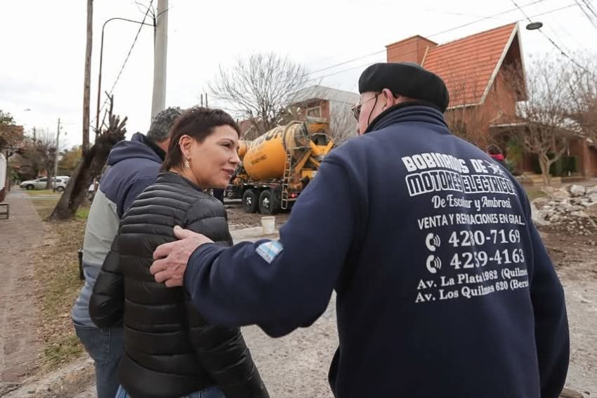La intendenta de Quilmes, Mayra Mendoza, recorrió este lunes los trabajos de bacheo en hormigón que se están llevando adelante en la intersección de San Mauro Castelverde y Lisandro de la Torre, en Quilmes Oeste, en el marco del Plan Municipal de Bacheo, que comprende la reconstrucción de pavimentos de hormigón en distintos puntos del distrito y que se realiza con fondos 100% municipales.