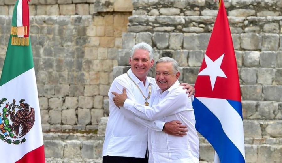 Resumen Latinoamericano, 11 de febrero de 2023. El presidente de México, Andrés Manuel López Obrador, condecoró en la tarde de este sábado al presidente de Cuba, Mario Miguel Díaz-Canel con la medalla de la Orden del Águila Azteca.
