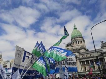En el marco de la masiva movilización docente convocada por el Frente de Unidad desde el Congreso a la Casa de la Provincia en Buenos Aires, el Secretario General de UDOCBA formuló duras críticas al Gobierno nacional y provincial, a quienes acusó de haber fracasado en su gestión.