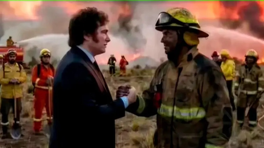 MILEI TRUCÓ con IA una FOTO para agradecer a los BOMBEROS de la PATAGONIA