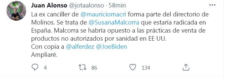 Un dato no menor, citado por Alonso es qué figura del macrismo forma parte del directorio empresarial de MOLINOS.