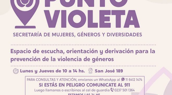 El Gobierno Municipal de Moreno pone al servicio de la comunidad los nuevos PUNTOS VIOLETA, dedicados la escucha, la orientación y la derivación para la prevención de la violencia de géneros de la Secretaria de Mujeres, Géneros y Diversidades. Estos espacios de atención se encuentran ubicados en varios puntos del territorio, específicamente, en las delegaciones de Moreno Sur; Álvarez – La Reja; Paso del Rey y Cuartel V.