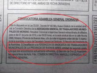 Mediante la aprobación en Asamblea General Extraordinaria de afiliados de la Asociación Sindical de Trabajadores Municipales de Moreno “se resolvió la desafiliación a la Federación de Sindicatos de Trabajadores Municipales de la provincia”, que conduce Oscar Roggero. La sorprendente medida llevada adelante por el sindicato de base que tiene a Marcelo Espíndola como su secretario general fue comunicada oficialmente al Ministerio de Trabajo, a las autoridades municipales y a la propia Federación.