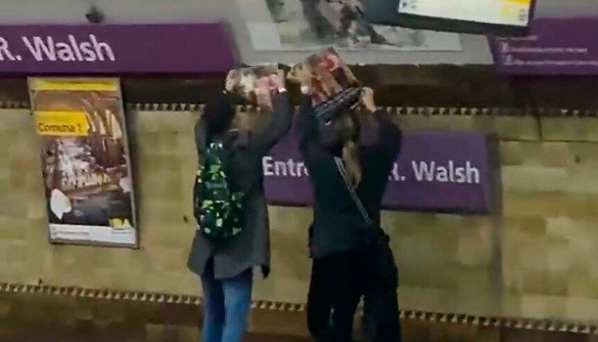 Grupos negacionistas vandalizaron la estación Rodolfo Walsh de la Línea E de subterráneos de la ciudad de Buenos Aires, colocando carteles cambiando el nombre por el de “Víctimas del terrorismo”.