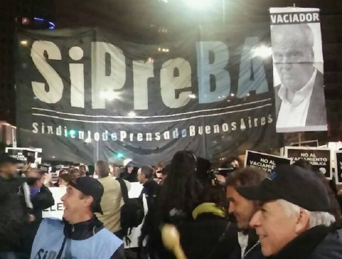 Además de los trabajadores de la Televisión Pública, Radio Nacional y Télam, participaron de la protesta los integrantes del Sindicato de Prensa de Buenos Aires (Sipreba) y del Sindicato Argentino de Televisión, Servicios Audiovisuales, Interactivos y de Datos (Satsaid).