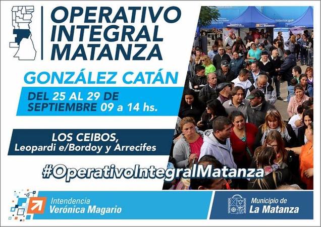 Del 25 al 29 de septiembre, el Municipio de La Matanza junto a áreas gubernamentales de Nación y Provincia realizará el próximo Operativo Integral Matanza el barrio Los Ceibos de González Catán.