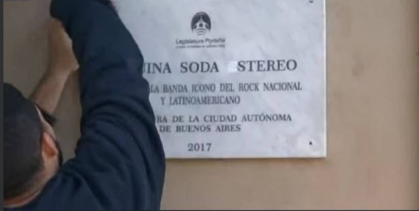 “Esquina Soda Estereo (sic). Aquí nació la banda ícono del rock nacional y latinoamericano. Legislatura de la Ciudad Autónoma de Buenos Aires. 2017”, se puede leer en la placa colocada en la que fue vivienda de la familia de Charly Alberti, baterista del grupo, que había cedido una habitación para las primeras operaciones del grupo que completaban el guitarrista y cantante Cerati y el bajista Zeta Bosio.
