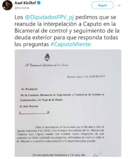 Un grupo de legisladores presentó una nota en la Comisión Bicameral de Seguimiento y Control de la Gestión de Contratación y de Pago de la Deuda con el objetivo de que se vuelva a citar al ministro de Finanzas, Luis Caputo, y se reanude la interpelación que tuvo lugar el miércoles.