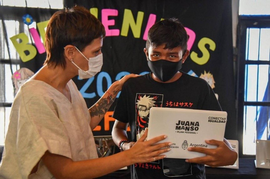 “Esta computadora es una herramienta de estudio y queremos que la utilicen para que puedan desarrollar todas sus capacidades y creatividad. Para nosotros la educación es un pilar, pero para que todos y todas podamos tener educación, primero hay que lograr ir elevando el piso de igualdad. Y el Estado, con un esfuerzo enorme, viene a poner en igualdad de condiciones a todos y todas para que puedan estudiar”, afirmó Mayra.
