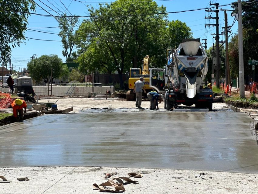 REPAVIMENTAN CON HORMIGÓN LA CALLE PRESIDENTE PERÓN, EN EL MARCO DE LA OBRA DEL PASO BAJO NIVEL DE CALZADA