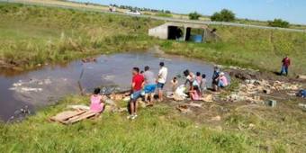 Un camión que transportaba unas 6.000 botellas y porrones de cerveza volcó su carga en un arroyo de la ruta 14, a la altura de la ciudad entrerriana de Gualeguaychú, y los vecinos de la zona se metieron al agua para llevárselas.