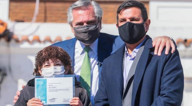 Durante el acto, el Presidente entregó la pensión no contributiva número 100.000, en lo que representa una política de restitución de este aporte del Estado a las personas con discapacidad en situación de mayor vulnerabilidad tras la quita y el congelamiento dispuesto por el gobierno anterior.