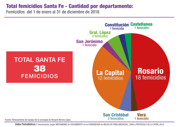 Santa Fe tuvo el triste indice de 38 femicidios durante el 2018, de los cuales 18 ocurrieron en la ciudad de Rosario. Esta alarmante cifra, ubica a la provincia en el segundo puesto del ranking nacional, después de Buenos Aires con 107 casos y antes de Tucumán y Córdoba con 21 cada una. En el país, el año pasado. 302 mujeres murieron asesinadas por la violencia machista.