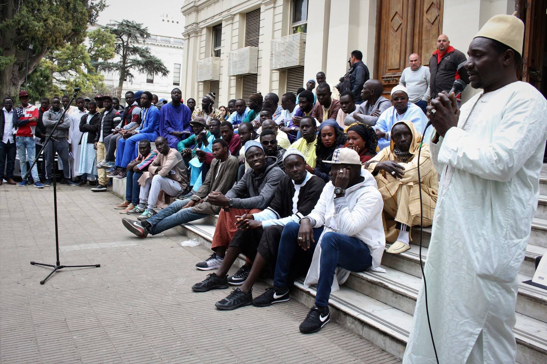 El evento se realizó ayer, miércoles 12 de septiembre, en las escalinatas del Rectorado de la Universidad Nacional de La Plata, donde hablaron integrantes de la comunidad senegalesa que relataron en primera persona la vulneración de sus derechos. Cheikh dijo: «la mayoría de los chicos pagamos monotributo y no tenemos documento (en referencia al DNI). Lo que hacemos es trabajar en la calle para poder pagar el monotributo, el alquiler, la luz, el gas y ayudar a nuestras familias. Lo hacemos para poder sobrevivir».