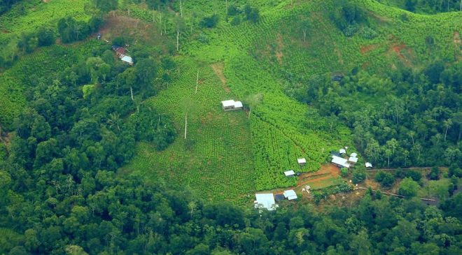 Cultivos de coca en Cauca, Colombia, imagen tomada desde un satélite.