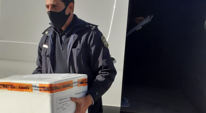 Ayer, jueves 27, arribaron al vacunatorio ubicado en la Escuela Municipal de Artes y Oficios, 400 vacunas Covishield (AstraZeneca-Oxford) destinadas a la inmunización de vecinas y vecinos de la comunidad. Se prevé comenzar la aplicación de las vacunas hoy, viernes 28, en los que ya recibieron la primera dosis.