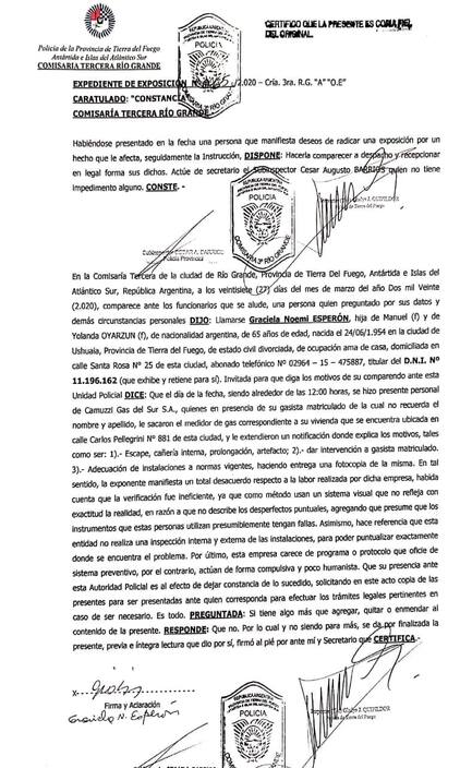 Por otra parte, denunció mensajes mafiosos por parte de la empresa: «hemos realizado denuncias, tanto a los medios como ante el ENARGAS, y al otro día le sacaron el medidor a la casa donde viven mis hijas con su mamá. A una concejal también le paso lo mismo. Así de claros los mensajes».