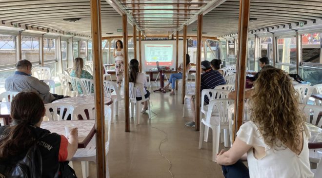 Durante la charla, se habló sobre la adaptación de los espacios, normativas de discapacidad, y formas de actuar al recibir una persona con discapacidad. Participaron del taller: catamaranes Río Tur, lanchas Mi Ilusión, Albatros, Instituto de Formación Superior 199 y Montaldo viajes.