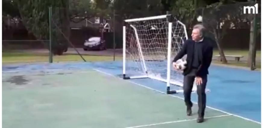 El presidente, Mauricio Macri, sufrió un golpe en su entrepierna por parte de un niño que le pateó un penal durante un recorrido que hizo con el secretario de Deportes, Carlos Mac Allister y la primera dama, Juliana Awada.