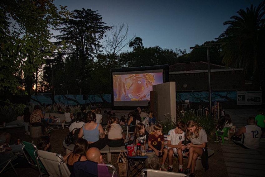 Durante la jornada una multitud de vecinos participó de la propuesta cultural al aire libre que incluyó la proyección en pantalla gigante de cortometrajes para infancias, en el Parque Saludable Ramón Carrillo, un pulmón verde recuperado y puesto en valor por la Comuna browniana.