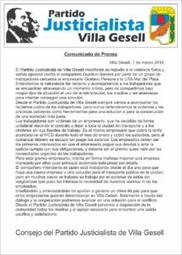 Por el ataque, el intendente recibió el apoyo del PJ de Villa Gesell que repudió que el reclamo no se haya efectuado por vías pacíficas. También fue respaldado por el partido Frente Grande.