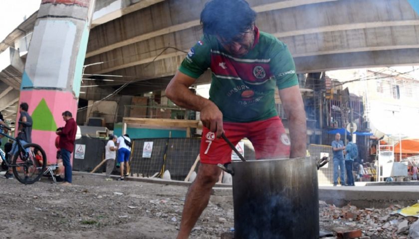 Las 23 familias, entre quienes hay mujeres embarazadas y niños, viven y duermen en la calle, debajo de la autopista Arturo Illia dentro del barrio situado en la zona de Retiro, rodeados de pedazos de ladrillos, cemento, comida y colchones que les fueron donados