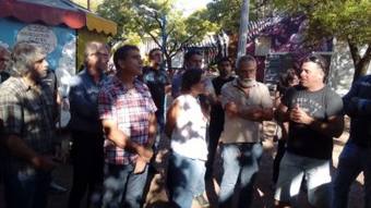 Los secretarios generales de los gremios SOC-RA, Walter Correa, SITRAJU-CABA, Vanesa Siley, APSEE, Carlos Minucci y Farmacia, Víctor Carricarte, junto a trabajadores gráficos, de Satsaid, SADOP, curtidores y judiciales, llevaron  su solidaridad, y mercadería para que los trabajadores despedidos de la planta de Fabricaciones Militares de Azul, puedan continuar con su acampe frente al municipio local.